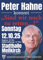 Der bekannte TV-Moderator und Bestsellerautor Peter Hahne kommt auf Einladung des OMCT-Temeplritterordens am 12. Oktober 2025 nach Meßkirch und referiert zum Thema: "Sind wir noch zu retten...?"