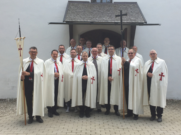 Weiterer Höhepunkt des Treffens im Bayrischen Wald war die Aufnahme von drei neuen Ordensbrüdern, die in einem festlichen Gottesdienst in den Stand des Rechtsritter erhoben wurden. „Heimat“ war das zentrale Thema in der Predigt des kath. Ordensgeistlichen P. Christian sowie in der Ansprache des Ordensmeisters. Beide haben ihre familiären Wurzeln im Bayrischen Wald. Eine Heimat kann man aber auch in der Kirche und im Orden finden. Den Abschluss des dreitägigen Treffens bildete die sonntägliche Messe in der Wallfahrtskirche Mariäe Himmelfahrt auf dem Bogenberg, der ältesten Marienwallfahrtskirche Bayerns.