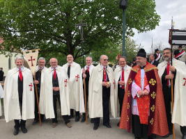 Mittlerweile auch traditionell beteiligte sich, allerdings zu Fuss, eine, leider stark ausgedünnte, Gruppe von Ordensrittern der Komturei Süd des OMCT Tempelritterordens bei der Wallfahrt.